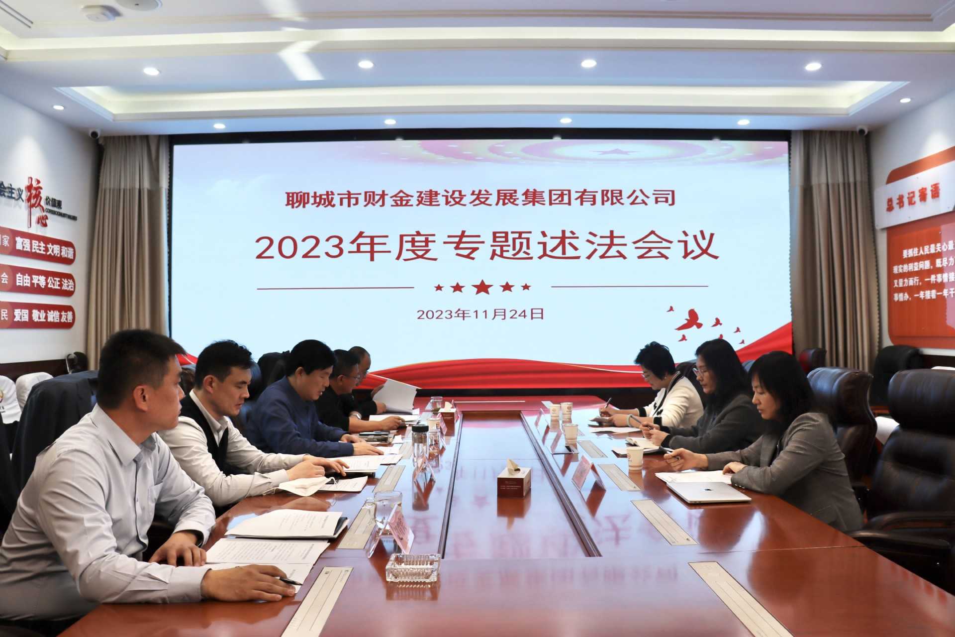 為貫徹落實黨中央關于全面依法治國的部署要求、落實推進法治建設第一責任人職責,充分發(fā)揮領導干部在法治建設中的示范引領作用,按照市委依法治市委員會要求,11月24日上午,財金集團召開2023年度領導班子專題述法會議,邀請市司法局四級調研員魏琳、市人大代表張樹杰、市政協(xié)委員薛國玉參加會議并對述法對象進行評議,財金集團黨委書記、董事長張繼堯點評并作重要講話。